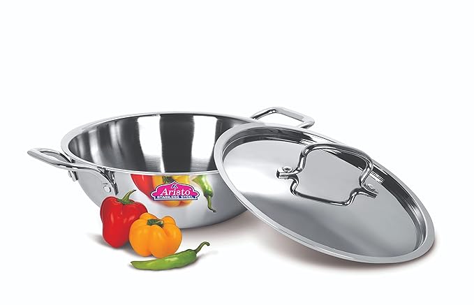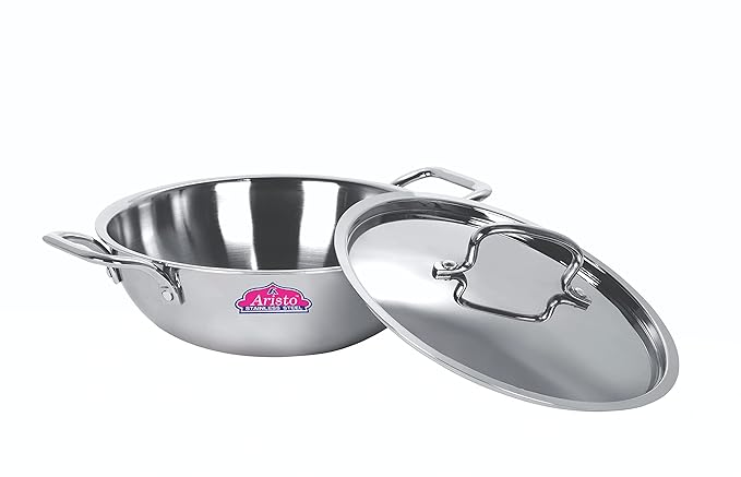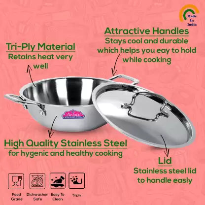 Aristo Triply Stainless Steel Kadhai with Lid | Induction Friendly | 4 Sizes Available