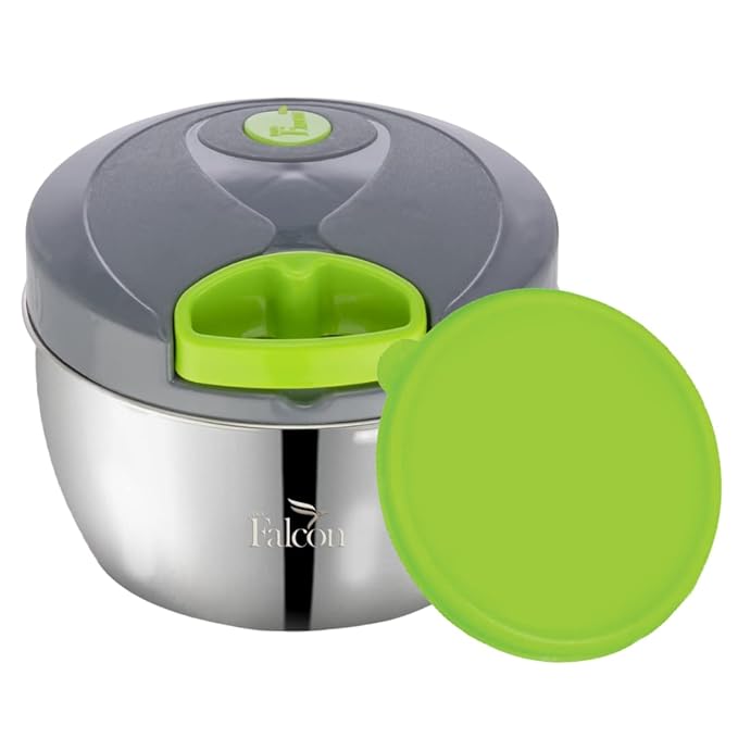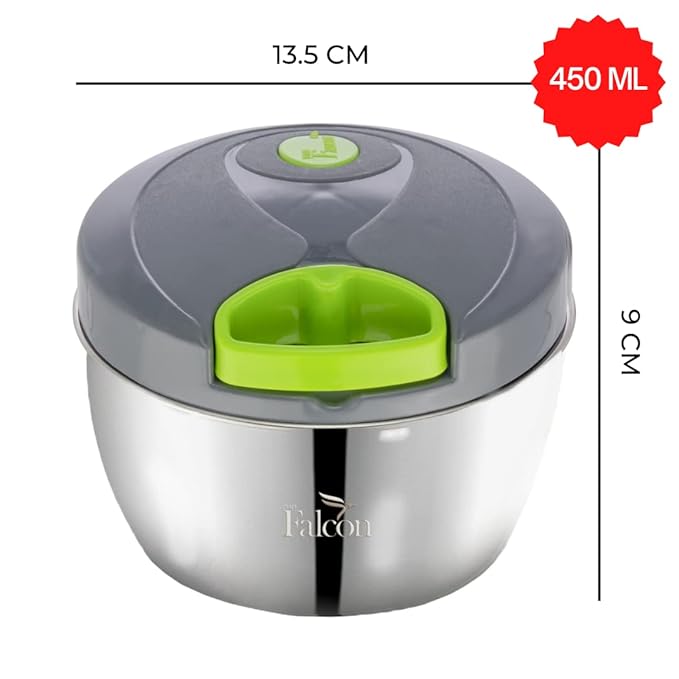 Food Grade Stainless Steel Handy Vegetable Chopper with 3 Blades & BPA-Free 450ml Storage Lid – Compact & Efficient (Green)