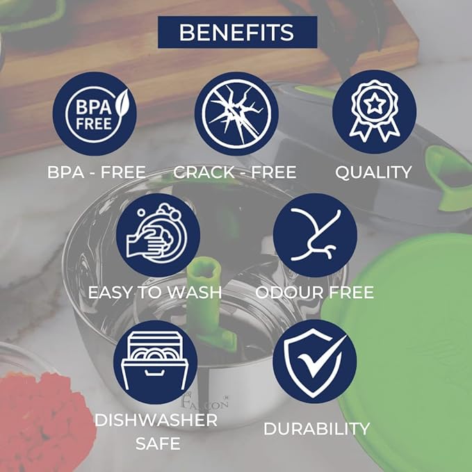 Thanks to the superior-quality spring mechanism and unbreakable steel base, this chopper guarantees easy operation and durability. The unique rotator technology allows for smooth blade rotation with minimal friction, providing a quick and efficient chopping process without damaging the veggies or losing their nutrients.